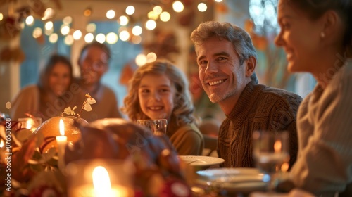 family, thanksgiving, dinner, celebration, gathering, meal, holiday, home, turkey, feast, table, food, autumn, festive, togetherness, tradition, happiness, candle, decoration, warmth, love, bonding, relative, adult, children, man, woman, boy, girl, male, female, children, children, joy, cosy, dining, light, evening, thankful, gratitude, domestic, intimate, harvest, cultural, concept, design, fall, season, together
