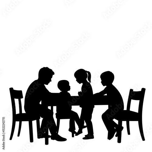 family, silhouette, gathering, table, togetherness, children, love, bond, connection, black-and-white, oneness, celebration, family time, children, no people, joy, interaction, dining, modern, minimalism, concept, together, activity, home, warmth, happiness, lifestyle, communication, support, playfulness, innocence, leisure, 4, friendship, relation, storytelling, heartwarming, simplicity, childhood, dining room, cosy, playful, joyful, engagement, laughter