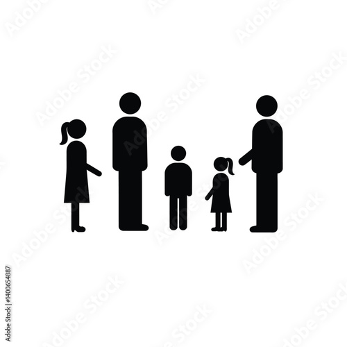 family, icon, pictogram, eltern, mother, father, children, boy, girl, sibling, stick figure, silhouette, vector, illustration, people, group, standing, happy, together, love, care, support, symbol, signs, simple, isolated, outline, human