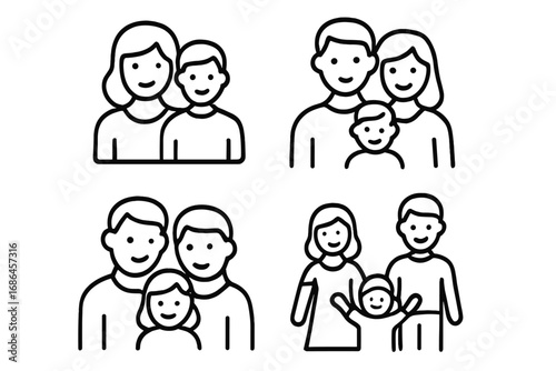 family, icon, vector, children, line, set, diversity, simple, symbol, modern, gay, mother, father, son, daughter, couple, human relationships, parenthood, love, together, people, human, outline, graphic, illustration, design, pictogram, element, collection, editable, stroke, web, app