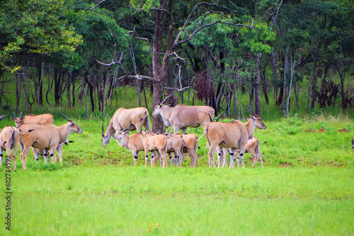 Family of eland antelopes in a nature reserve in Zimbabwe