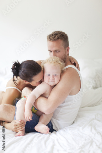 people, cosy, family life, family, eltern, father, children, woman, love, indoor, boy, togetherness, together, vertical, three people, playful, son, young men, missy, several, colours, happiness, happy, amusement, mother, morning, adult, man, toddler