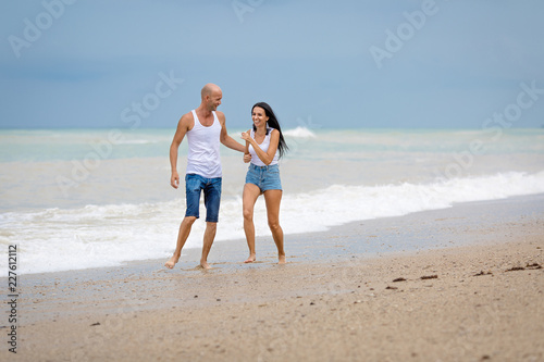 couple, sea, sand, walking, overcast, cloudy, active, adult, bald, barefoot beach, beach, boy, brunette, caucasian, day, emotional, european, female, flirting, foam, fun, girl, guy, hairless, heterosexual, horizontal, human, jean, laughing, lifestyle, male, man, 1, open air, outside, people, positivity, summer, surf, tank top, together, 2, valentine, wet, woman, young