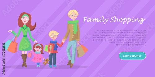 family, shopping, holiday, sale, web, banner, purchase, consumerism, buy, buying, business, good, choice, vector, illustration, flat, isolated, mother, father, children, children, relative, son, daughter, woman, female, man, male, boy, girl, children, childhood, together, couple, pair, buyer, client, paper, bag, toy, present, cyberspace, landing, page, buttons, website, header, text