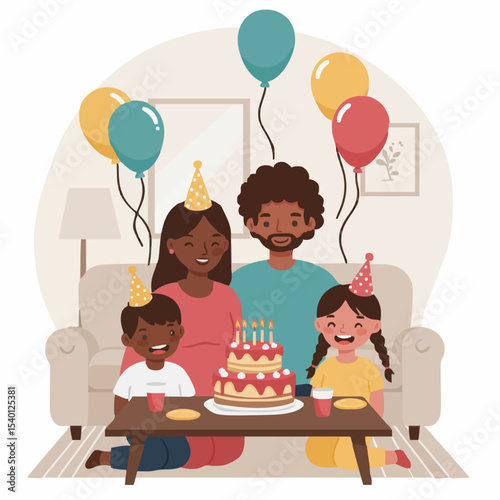 cartoon, birthday, children, vector, cake, illustration, food, boy, children, party, celebration, eating, family, woman, fun, people, children, baby, children, balloon, love, childhood, drawing, art, little