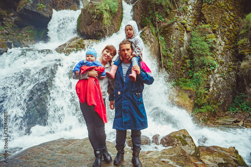 family with children at the waterfall