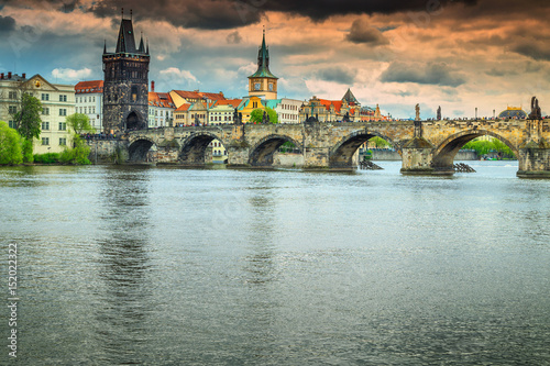 Famous medieval stone Charles bridge, Prague, Czech Republik, Europe