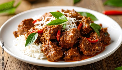 Famous traditional Indonesian Rendang dish. Famous Cuisine made with beef with a lot of spices