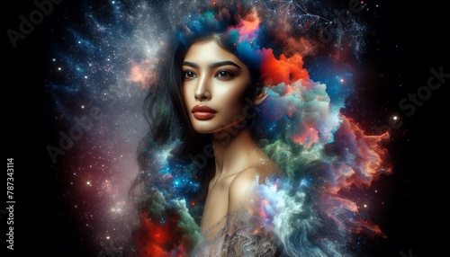 Fantasy Abstract of Woman with Colorful Splash Painting