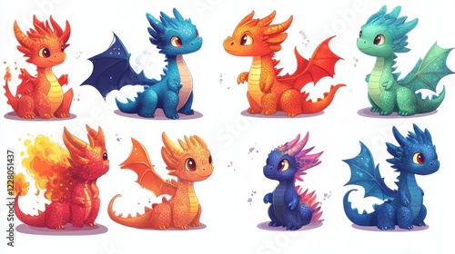 Fantasy dragon set. Cartoon illustration of fantasy dragon set for web design