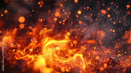 fantasy fire flames with glowing magical sparks