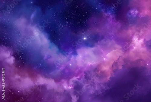 Fantasy purple and blue cosmic background with stars, nebula clouds, celestial formations, and glowing galaxy elements in a magical night sky, ideal for sci-fi, space, and fantasy designs.