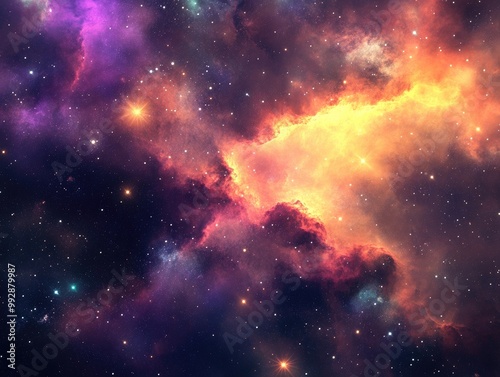 Fantasy space nebula featuring a massive interstellar cloud adorned with stars created through 3D illustration techniques