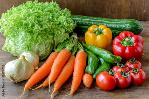 Farm Fresh Vegetables Lettuce Carrots Peppers Tomatoes Onions Cucumber and Green Chilies for Healthy Eating and Vibrant