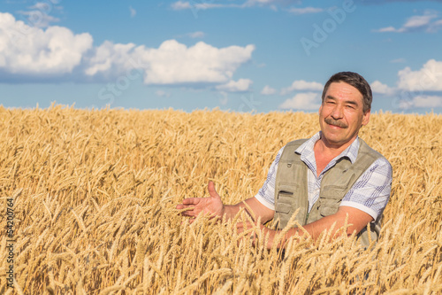 agricultural, agriculture, august, background, blue, bread, cloud, country, countryside, crop, cultivated, dry, durum, farm, farmer, farming, farmland, field, food, gold, grain, ground, grow, harvest, hat, jean, labourer, land, male, man, mature, nature, overall, people, person, plant, prairie, produce, proud, rural, scenic, sky, straw, summer, wheat, wheatfield, work