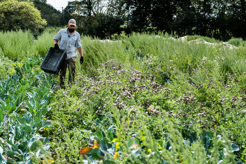 man, farmer, harvesting, one person, walking, caucasian, adult, england, food, fresh produce, vegetable, farm, outdoors, summer, day, agriculture, organic, agribusiness