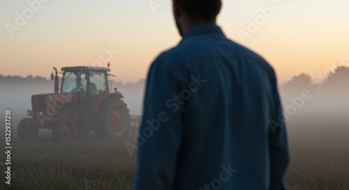 farmer, agriculture, sunrise, field, tractor, farm, rural, landscape, dawn, mist, fog, harvesting, countryside, land, dirtied, farming, nature, country, morning, sun, light, sky, heritage, tradition, family, work, labor, livelihood, generation, future, growth, harvest, crop, planting, season, rural scene, agricultural, perseverance, dedication, hope, progress