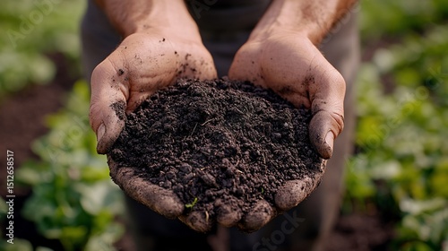 Farmer's hands holding rich dark soil, a symbol of growth and agriculture