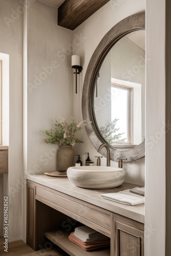 bathroom, ladies bathroom, room, home, furniture, architecture, hotel, window, house, design, nobody, living room, indoor, luxury, living, wooden, apartment, inside, texture, chic, interior, home decor, rustic, mirror, sink, cabinet, stone, ceramic, beige, white, brown, cosy, serene, lighting, decor, wall