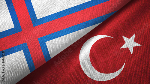 Faroe Islands and Turkey two flags textile cloth, fabric texture