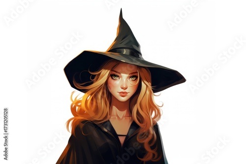 illustration, studio shot, young adult, copy space, front view, human face, human hair, one person, perfection, coiffure, halloween, long hair, clothing, headwear, isolated, portrait, apparel, cartoon, costume, fantasy, fashion, redhead, warrior, female, person, adult, anime, human, white, sorcerer, woman, art, hat