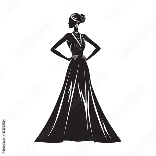 fashion, model, silhouette, pose, standing, dramatic, glamour, runway, style, female, beauty, catwalk, trend, art, clothing, chic, vector, illustration, design, figure, modern, outfit, elegant, graphic, artwork, minimal, creative, outline, branding, poster, icon, stylish, walk