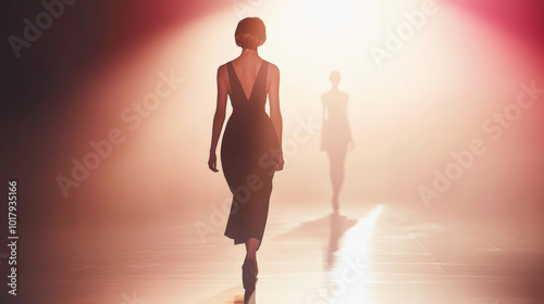 silhouette, runway, spotlight, shadow, elegance, minimalism, fashion, glamour, fashion show, catwalk, haute couture, performance, artistic, creative, shadow play, avant-garde, fashion design, evening dress, haute couture, dramatic, style, fashion industry, lighting