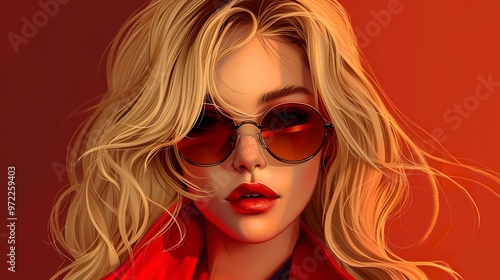 Fashion portrait of a woman with blonde hair and sunglasses.