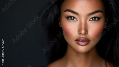 perfection, grace, vogue, graceful, serenity, diverse, calmness, radiant, skincare, chic, ethnicity, aesthetic, coiffure, youthful, gorgeous, trend, glamour, eyebrow, make-up, posing, editorial, cosmetic, head shot, confident, shiny, eyelash, model, luxury, elegant, charme, allure, black hair, person, studio, refined, face, female, portrait, woman, young, modern, dark, style, fashion, attractive, brown eyes, beauty, background, asian