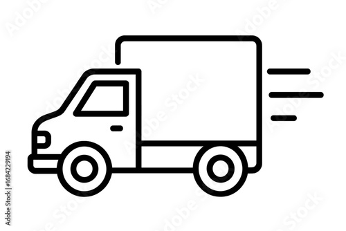 Fast delivery truck icon. Shipping service, express delivery, and logistics concept. Lorry symbol for web and apps. Vector line art illustration of a moving van.