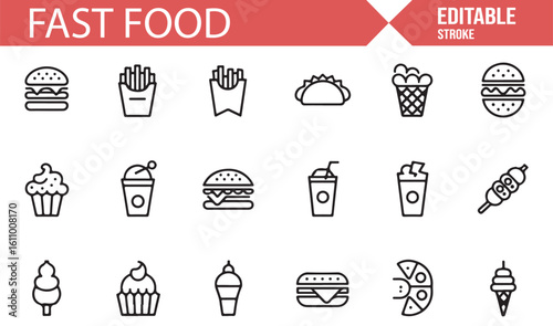 Fast Food Icon Set for Meal, Snack, and Beverage Representation