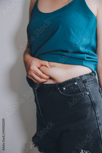abdomen, asia, asian, background, bad, belly, body, carb, carbohydrate, cellulite, chubby, closeup, concept, diet, eating, excessive, fat, female, food, gain, girl, hand, healthy, her, holding, human, loss, lost, corpulent, obesity, 1, overweight, people, person, pinch, shape, skin, stress, tighten, unhappy, unhealthy, waist, weight, white, woman, woman
