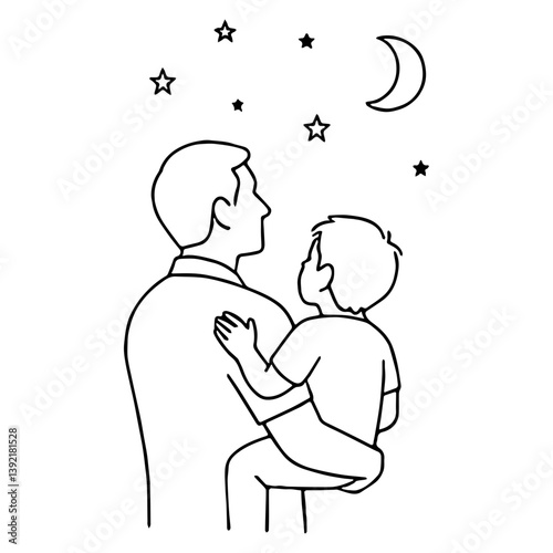 Father & Child Stargazing Outline - Father's Day Wonder Art