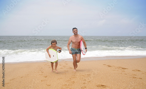 water sport, sport, bodyboarding, beach, ocean, children, family, man, father, father, parenthood, vacation, holiday, recreation, extreme, sand, wave, fun, leisure, holding, sunny day, lifestyle, outside, children, eltern, father, boy, middle-aged, people