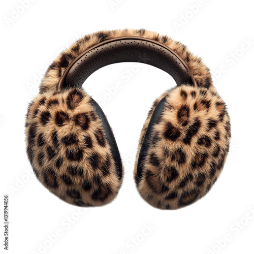 Faux Fur Earmuffs with Subtle Leopard Print Isolated on Transparent Background