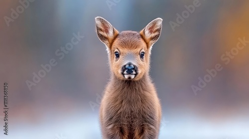 Fawn Portrait: A young deer fawn, with soft brown fur and large, curious eyes, looks directly at the camera in a captivating portrait. The gentle.