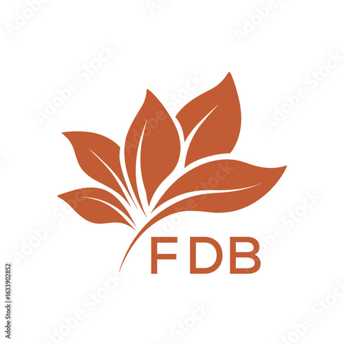 FDB Elegant Minimal Leaf Logo Design, FDB Later Logo, Botanical Nature Logo with Text, Clean Botanical Logo Design, Abstract Nature Brand Icon.