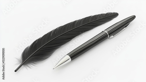 feather, pen, black, white, writing, office, stationery, business, tool, instrument, writing utensil, ink, modern, design, minimalist, simple, elegant, technology, digital, image, graphic, illustration, three-dimensional, realistic, drawing, rendering, art, creative, stylish, contemporary, object, composition, still life, photo, high-quality, professional, clean, isolated, isolated object, product, studio, black-and-white, smooth, shiny