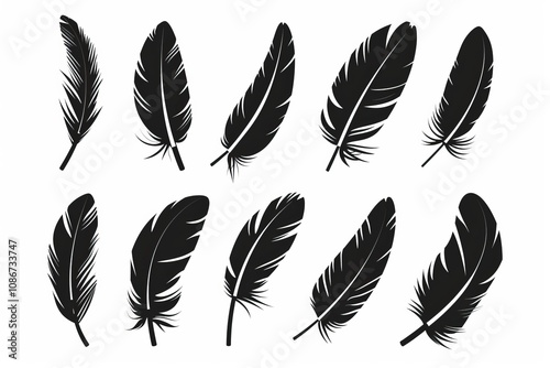 feather, icon, animal, feather, isolated, black, minimal, flat, plume, symbol, elegant, soft, signs, white, background, generative, ai, illustration, silhouette, emblem, buttons, pictogram, shape, outline, bird, wing, object, nature, quill, fluffy, plumage, colours, texture, cygnet, fragile, softness, fly, dove, delicate, closeup, fashion, elegance, indian, wildlife, pen, dream, goose, set