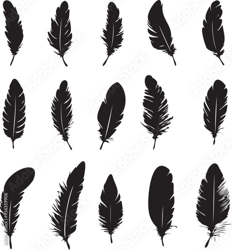 Feathers set black silhouettes