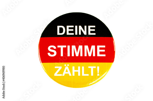 Federal election button Bundestagswahl Germany. Button with statement, your vote matters.