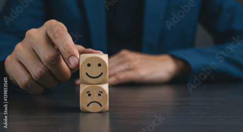 satisfaction, feedback, life events, assessment, evaluation, emotion, block, happy, sad, client, business, review, opinion, rating, service, choice, positive, negative, wooden, cube, survey, face, hand, quality, result, success, mood, feeling, decision, blue, chart, grade, corporate, select, choose, rate, score, expression, comment