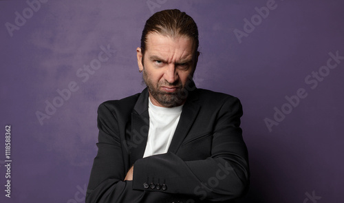 feeling displeased and disappointed, looking serious, annoyed and angry with crossed arms