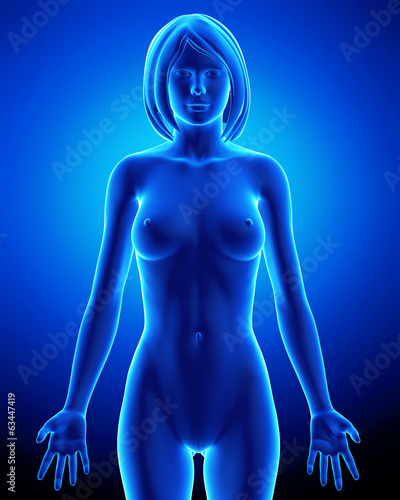 anatomy, naked, belly, blue, body, build, female, front, human, illustration, image, muscular, painting, ray, view