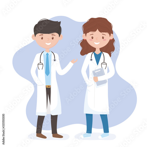 female and male physician with uniform and stethoscope medical staff professional cartoon character