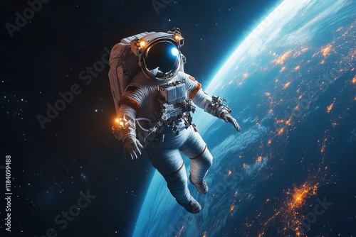 astronaut, female, space, earth, background, visor, reflective, confident, relaxed, exploration, cosmos, calmness, infinite, evacuated, glowing