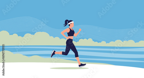 Female Athlete Running Outdoors With Scenic Backdrop Depicting Leisure, and Sport