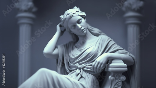 Female Contemplation Greek Statue, Minimalist Digital Concept Render