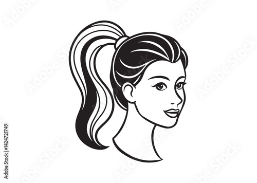 Female fashion hairstyle woman head with haircut ponytail silhouette Vector Icon Design