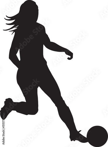Female Football Player Running with Ball Silhouette Vector